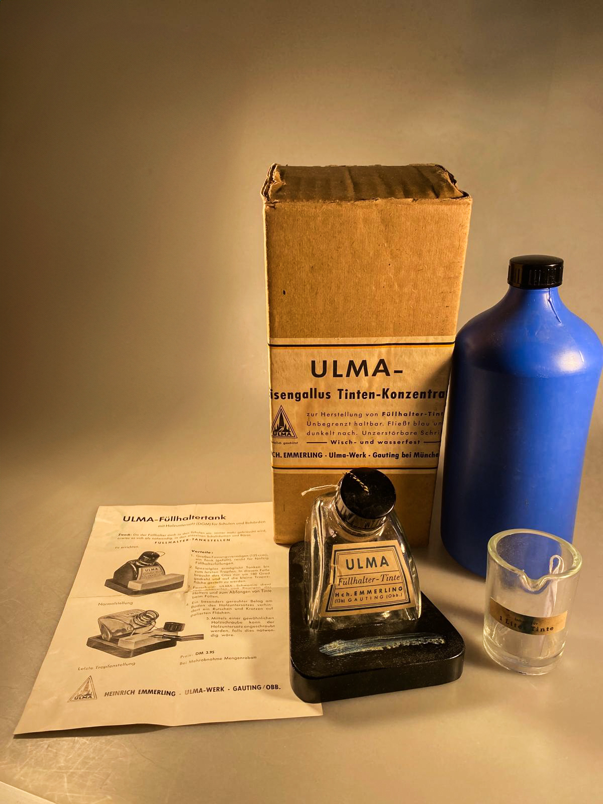 Die Firma ULMA wurde 1891 in Ulm durch Erich Emmerling gegründet und spezialisierte sich auf die Herstellung von Schulkreide – dieser Geschäftszweig brachte dem Unternehmen ein deutschlandweites Alleinstellungsmerkmal, als „erste Schulkreidenfabrik“ (https://ulma-einrichtungen.de/ueber-uns). Von 1946 bis 1968 wurde die Firma durch Heinrich Emmerling geführt. Da das vorgestellte Set seinen Namen trägt, ist eine Datierung in eben diesem Zeitrahmen naheliegend.